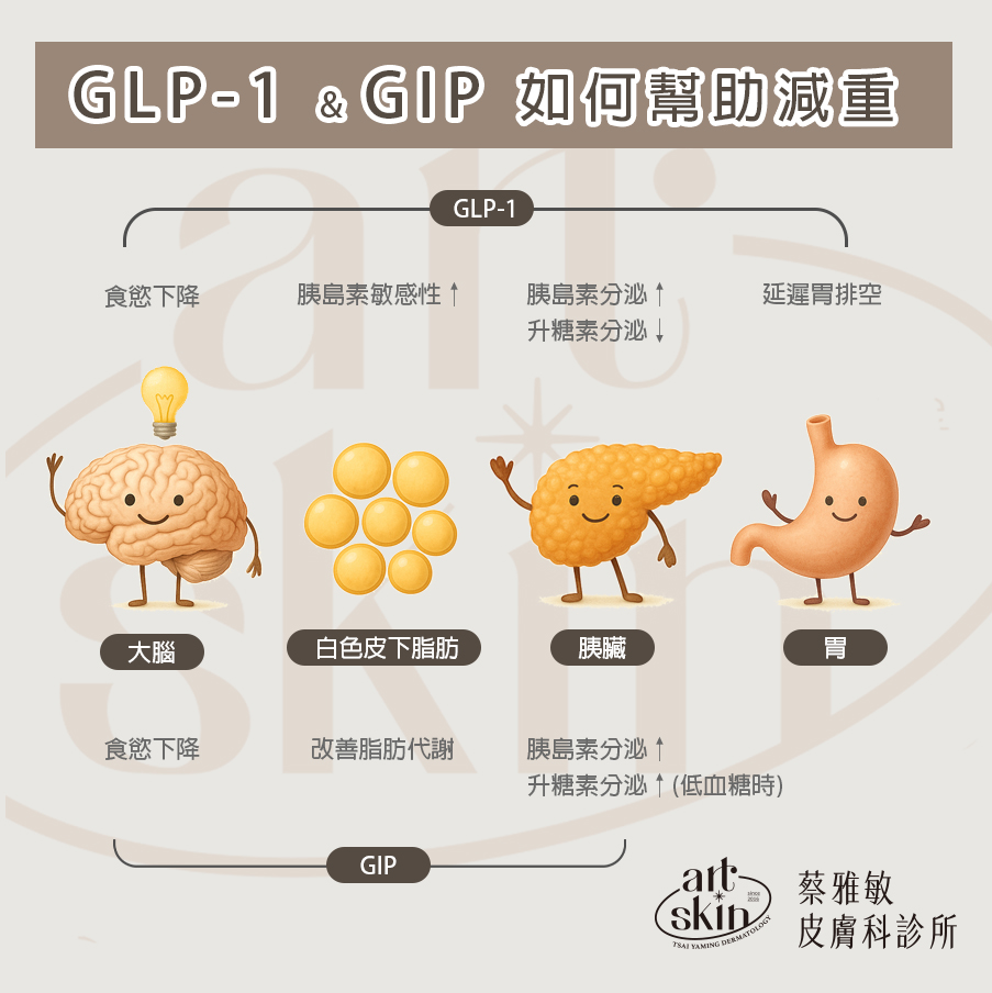 (2) 減重效果增強:GLP-1可以抑制食慾、延緩胃排空,而GIP則可能對脂肪代謝和體重減輕有輔助作用,進而提高減重效果。